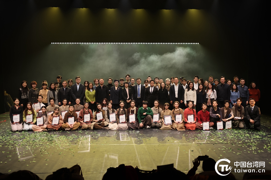 12月22日,北京高校港澳台学生国情教育项目汇演《一双筷子》,于北京舞蹈学院黑匣子剧场成功首演,图为《一双筷子》舞台照。(中国台湾网发)