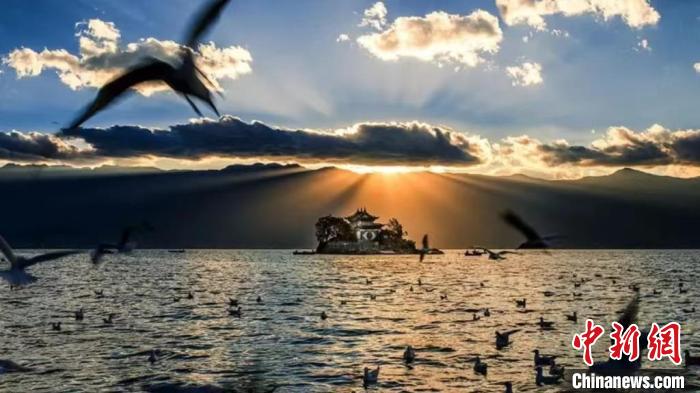 洱海东部的小普陀岛,虽袖珍,名气却不小。该岛形如金印浮于水面,故又被称为“海印”。传说曾有蛟龙在洱海兴风作浪,观音投下大印镇压,此印化为一座小岛。明朝崇祯年间,当地渔民在岛上修建了两层歇山顶楼阁,以供奉观音。(完)