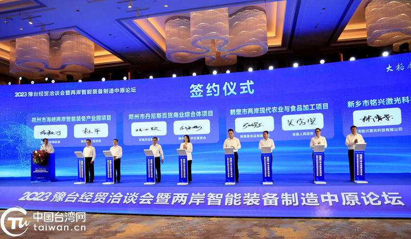 立足资源禀赋,全力推进产业对接。在郑州举办两岸机器人及智慧自动化产业对接活动,现场签约项目5个,合同金额52.5亿元;在南阳举办2023年度全国台企联华中区会长联谊会暨宛台产业对接会,成功签约项目6个,合同引资额达68亿元;在新乡举办2023豫台经贸洽谈会暨两岸智能装备制造中原论坛,总签约项目28个,总投资金额254.72亿元。此外,还在新乡、鹤壁等地举办了两岸食品包装产业专项对接活动、两岸食品产业协作洽谈会等活动,极大助推了豫台两地经贸合作融合发展。