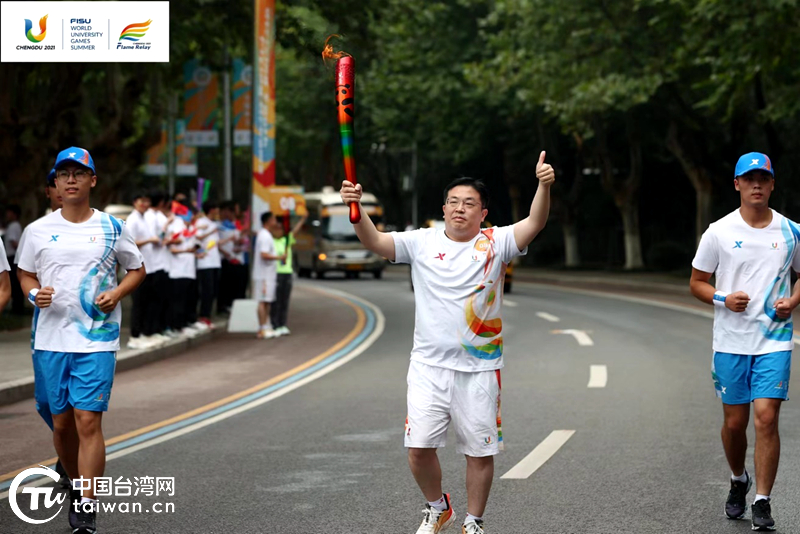 在川台青郭弘扬担任成都大运会火炬手(中国台湾网发)