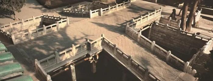 鱼沼飞梁是一座十字形古桥,被誉为“世界上最古老的立交桥”。关于鱼沼,古人以方者为沼,且水中多鱼,故名;沼上十字形桥梁即为“飞梁”。该桥建构方式精巧独特,鱼沼方池中筑立约30厘米见方的石柱34根,为宋代造型的小八角铁青石柱,而装饰的复盆式莲瓣则具有北魏建筑的风格。