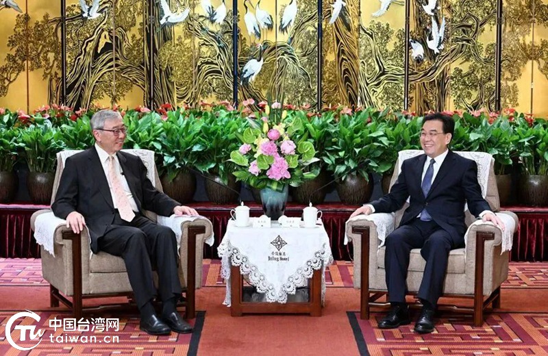 4月19日,江苏省委书记信长星在南京会见理事长苗丰强率领的台湾工业总会大陆经贸参访团。(中国台湾网发)