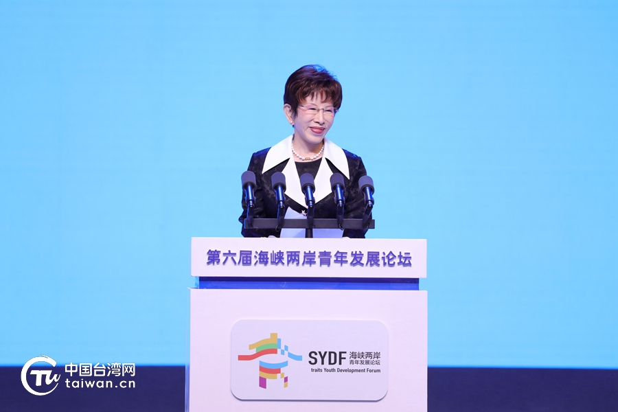 中国国民党前主席、中华青雁和平教育基金会董事长洪秀柱出席青发论坛开幕式并致辞。(中国台湾网 尹赛楠 摄)