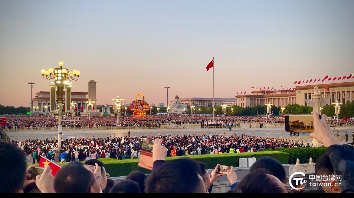 10月1日,来自北京、上海、广州、福建等地高校的44名台生在全国台联的组织下,前往天安门广场观看升国旗仪式,迎接国庆日的第一缕阳光。