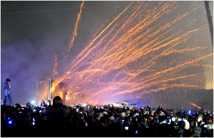 资料图:盐水蜂炮。中新社记者 王东明 摄