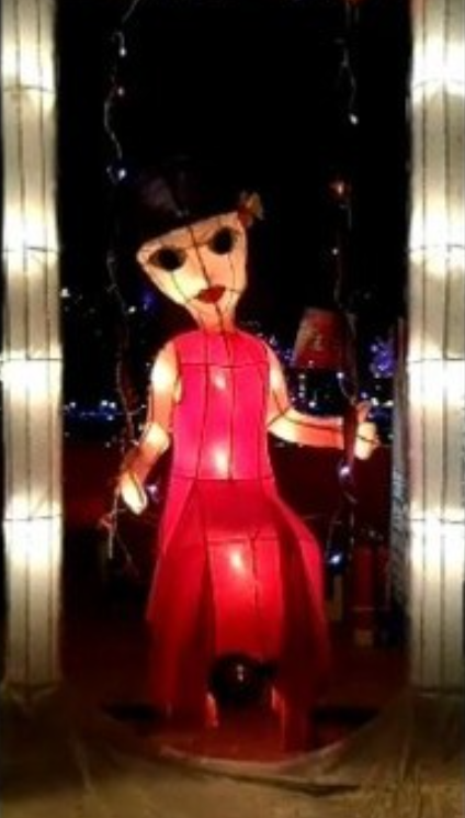 2017年高雄灯会,一花灯作品被指撞脸恐怖片角色“红衣小女孩”。图片来源:台湾社交媒体