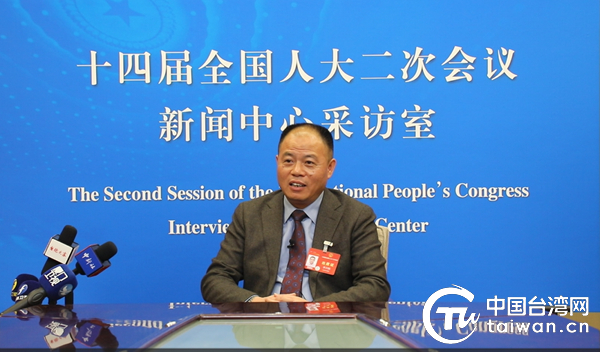 十四届全国人大台湾省代表李兴魁接受记者采访。(中国台湾网 发)
