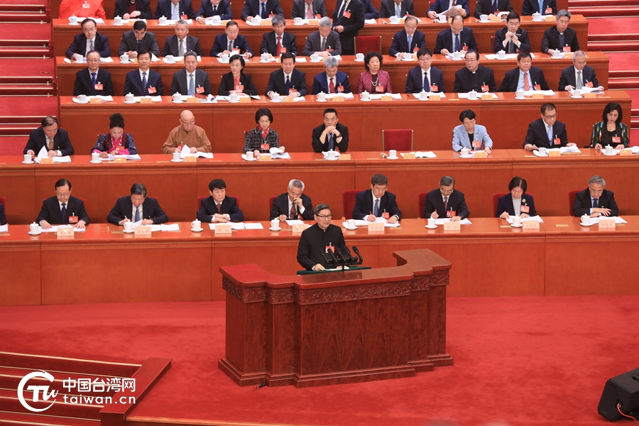 台籍全国政协委员符之冠作大会发言。(中国台湾网记者 尹赛楠 摄)