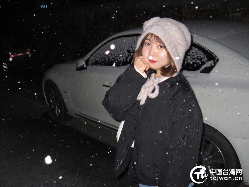 2023年,在北京大学攻读新闻与传播学院硕士研究生的台生黄幼欣第一次见到落雪,图为黄幼欣在雪夜留念。(中国台湾网 发)