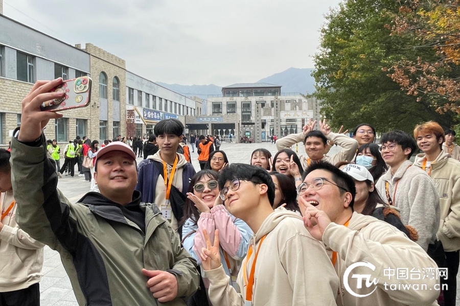 2023年11月4日至5日,全国台联组织50名2023级在京台生于北京市怀柔区九渡河黄花城水长城景区秋游。图为台生们在活动现场自拍。(中国台湾网记者 常凯特 摄)