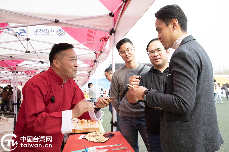 参与活动的台湾青年向传统艺人学习山东快书。(中国台湾网记者 陈佳慧 摄)