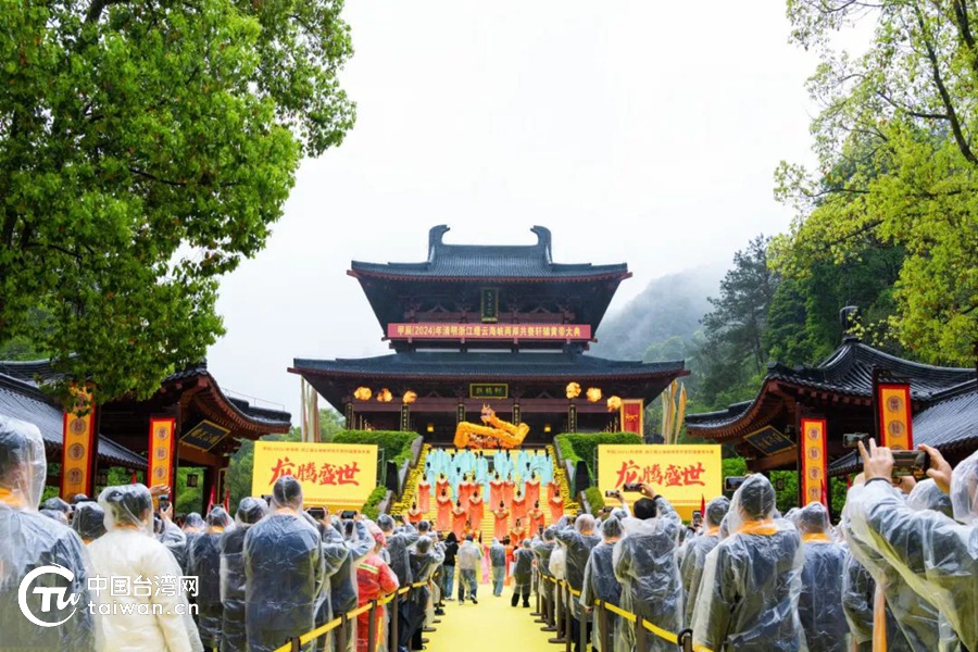 4月4日,甲辰(2024)年清明浙江缙云海峡两岸共祭轩辕黄帝大典在仙都黄帝祠宇举行。(中国台湾网发)