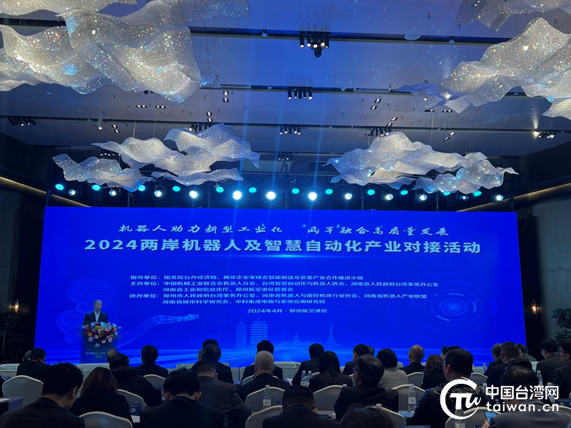 中国台湾网郑州4月9日讯(记者 孙路路) 最美四月,芳菲倾城。4月9日上午,以“机器人助力新型工业化,两岸融合高质量发展”为主题的2024两岸机器人及智慧自动化产业对接活动,在河南省郑州市航空港经济综合实验区举行。两岸相关从业者等同胞齐聚一堂,共享两岸机器人自动化行业一年一度的交流盛会,推动豫台经贸合作向更深层次发展。