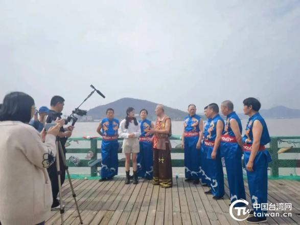 摄制组邀请“渔民号子”非遗传承人洪国壮和他的同伴一起表演,拍摄视频素材。(中国台湾网 发)