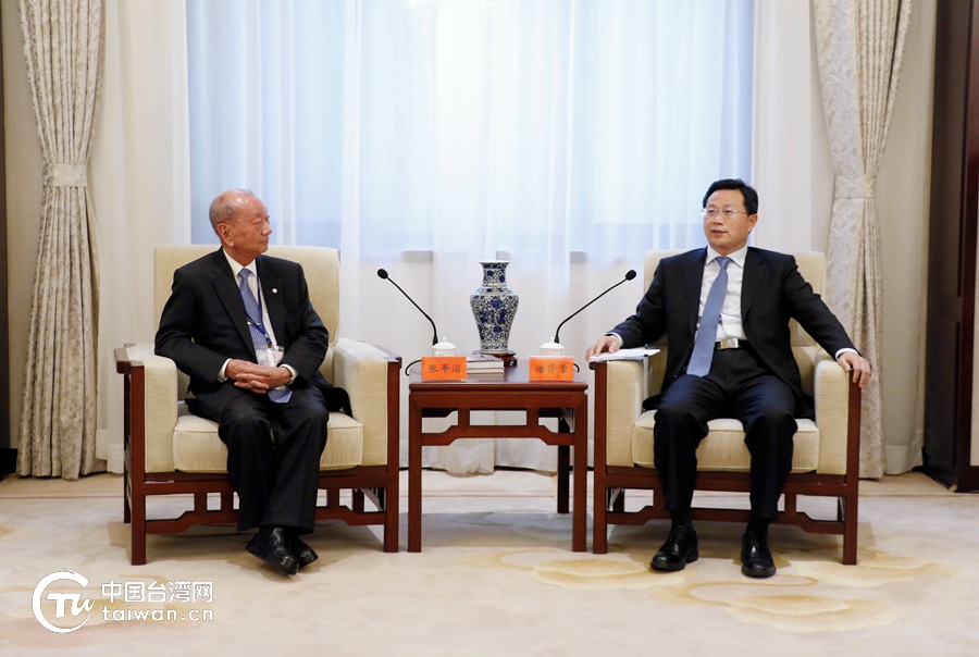 5月8日,中共中央台办、国务院台办副主任潘贤掌在北京会见了张平沼率领的台湾民意代表交流参访团。(中国台湾网记者 尹赛楠 摄)