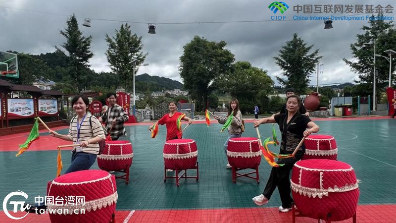花茂村乡亲们用隆隆鼓声欢迎两岸媒体人的到来。(中国台湾网记者 孙路路 摄)