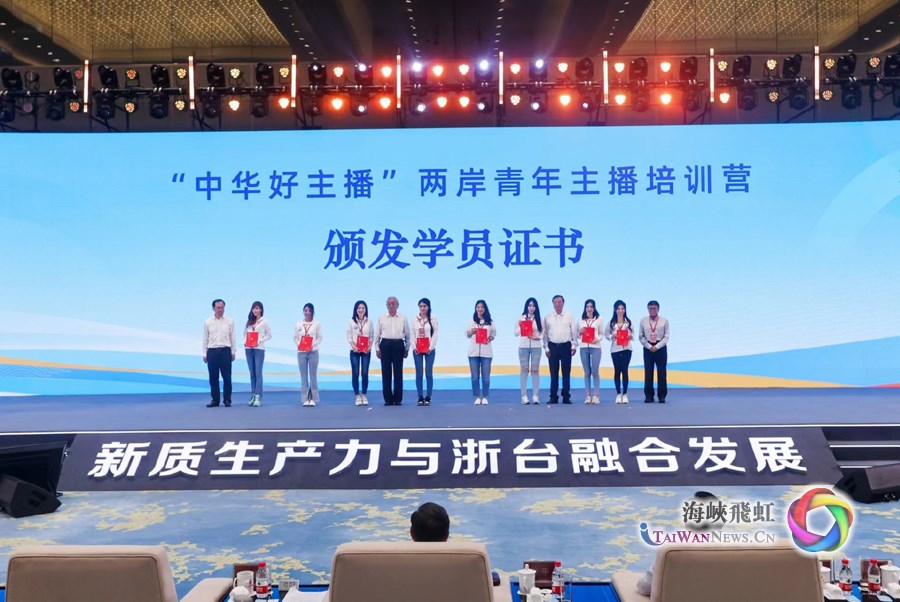 2024浙江·台湾合作周开幕式上,主办方为参加“中华好主播”两岸青年主播培训营的学员颁发证书(主办方供图)