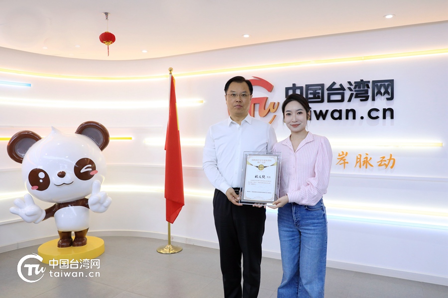 中国台湾网向姚义纯授予“海峡两岸青年就业创业推广大使”荣誉称号。(中国台湾网记者 尹赛楠 摄)