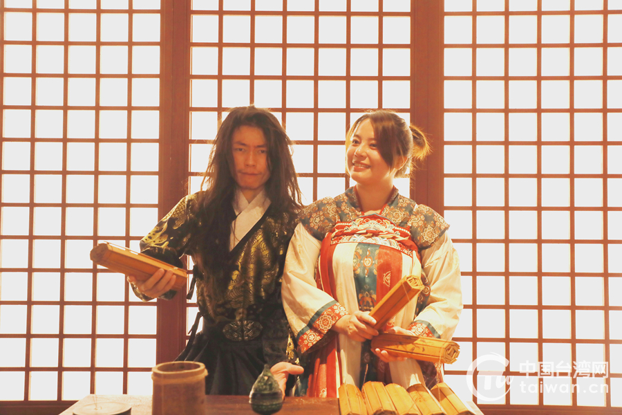 两岸媒体记者身着汉服,与舞者一同起舞。(中国台湾网记者 李宁 摄)