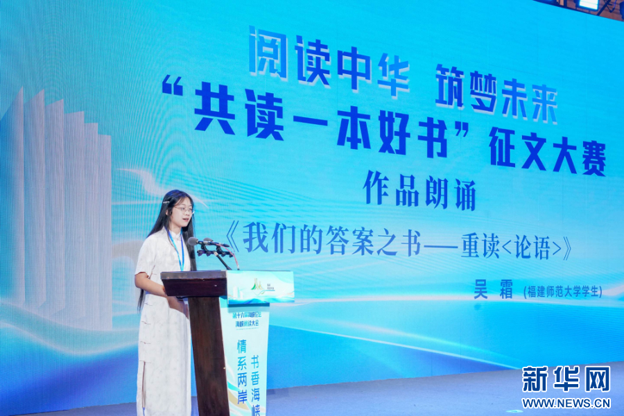 据了解,“共读一本好书”征文大赛自今年3月启动以来,得到了两岸读者的热烈响应,共收到作品2326篇,其中来自大陆的作品1788篇,来自台湾的作品538篇。在28日举行的第十六届海峡论坛·海峡阅读大会开幕式上,两岸多位参赛学生代表还上台朗诵了自己的获奖作品,通过分享阅读体悟,表达青年一代践行中华优秀传统文化的信念与热情。