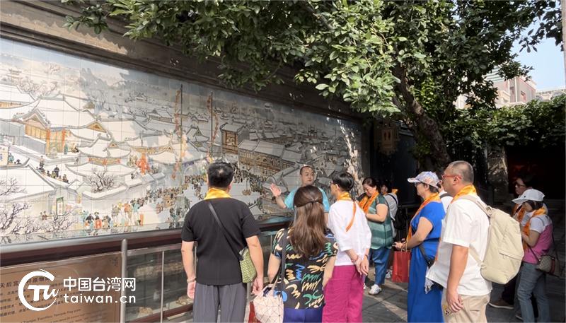 工作人员给两岸嘉宾讲解天后宫的历史渊源。(中国台湾网记者 张嘉琪 摄)