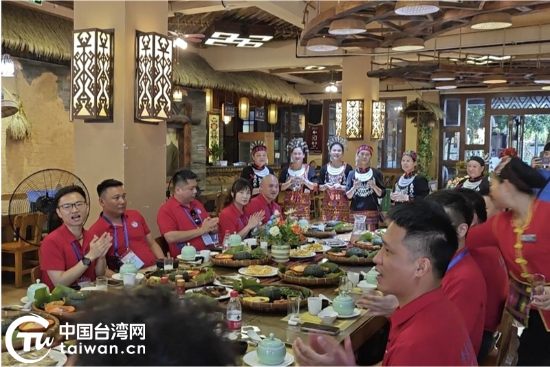 在海峡两岸交流基地——槟榔谷参观交流时,台湾青年们通过品尝当地特色的长桌宴等活动,亲身感受独特的黎族文化。他们纷纷表示:“两岸一家亲,我们都是中国人,都是龙的传人,有着相同的心灵归宿。”