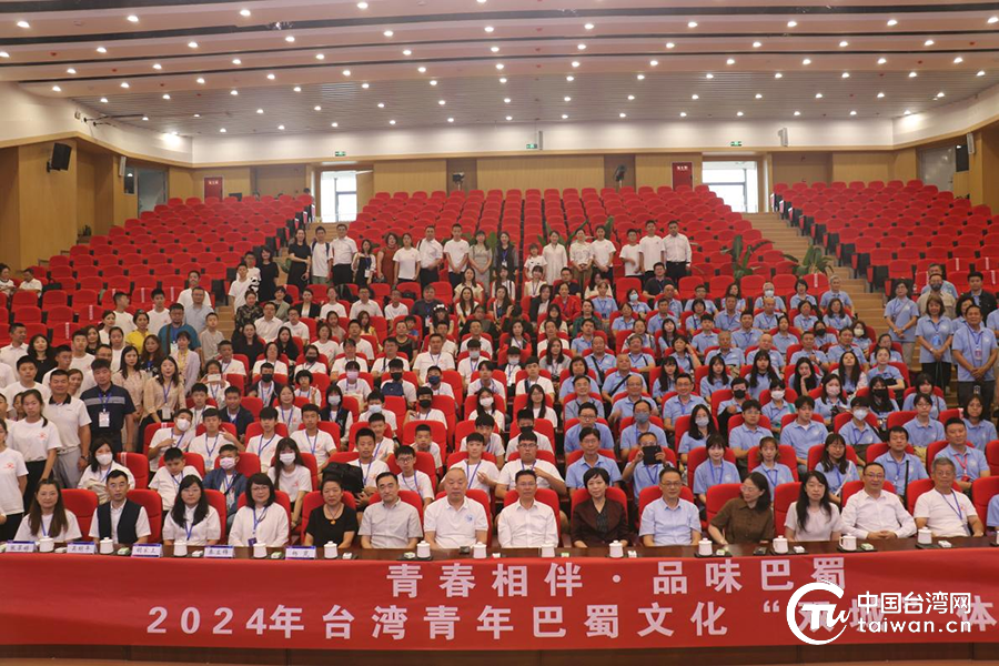 2024台湾青年巴蜀文化“双城”体验季活动开幕式现场全体嘉宾合影留念。(中国台湾网记者 刘赛飞 摄)