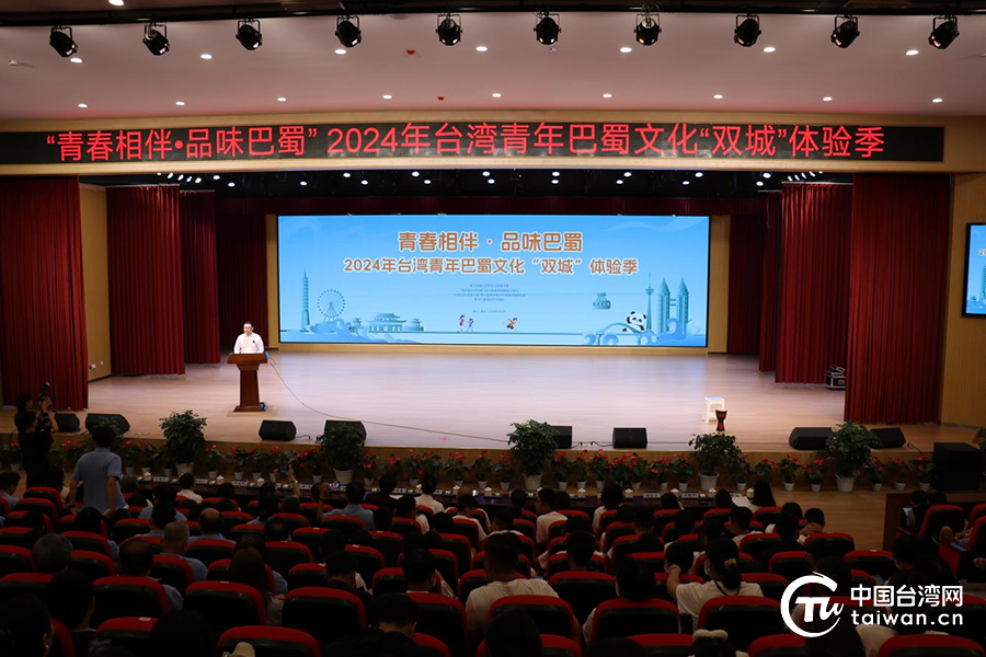 2024台湾青年巴蜀文化“双城”体验季活动开幕式现场嘉宾致辞。(中国台湾网记者 刘赛飞 摄)