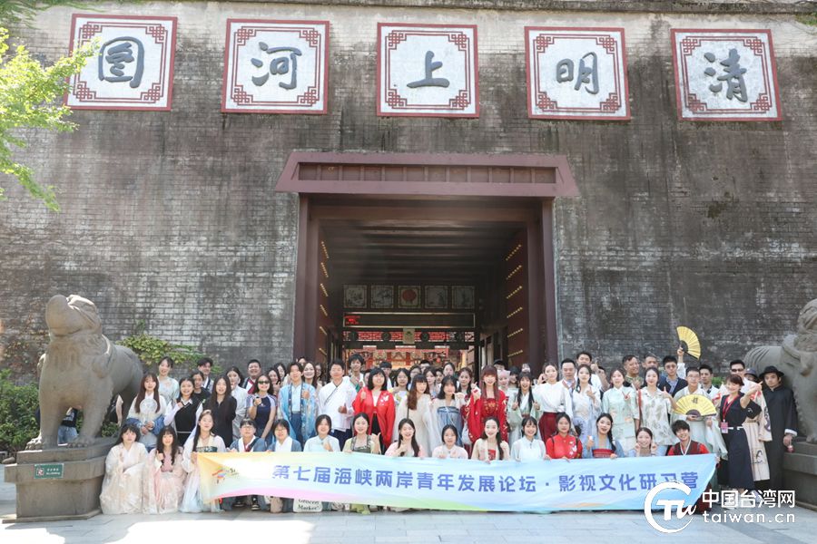 两岸青年参观横店清明上河图景区。(中国台湾网发)