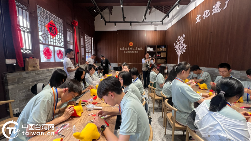 晋台中学生来到太原古县城,体验缝制布老虎。(中国台湾网记者 孙路路 摄)