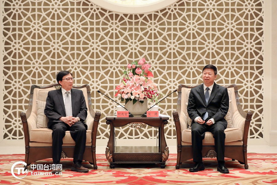 中共中央台办、国务院台办主任宋涛7月22日在昆山会见前来出席2024两岸青年企业家菁英峰会暨两岸青年实习就业创业研讨会的峰会台湾方面理事长刘兆玄。(中国台湾网记者 尹赛楠 摄)