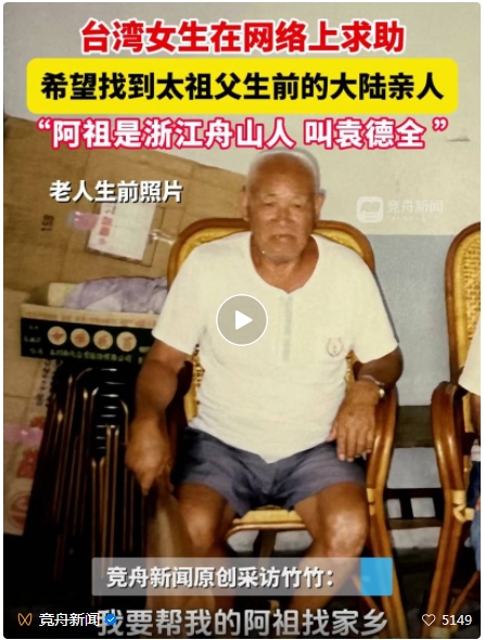 台湾女生为曾祖父寻舟山老家!有消息了……