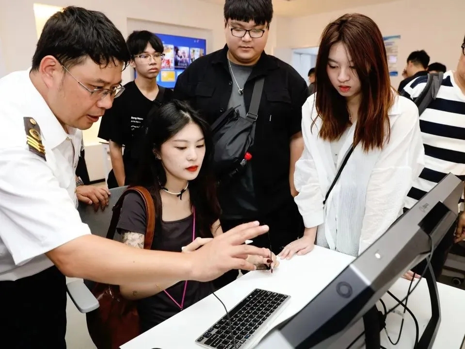 在学院的现代航运虚拟仿真中心,台湾的青年学生们亲身体验了航海模拟器的操作,还在渔民画工作室参观了渔民画的创作。