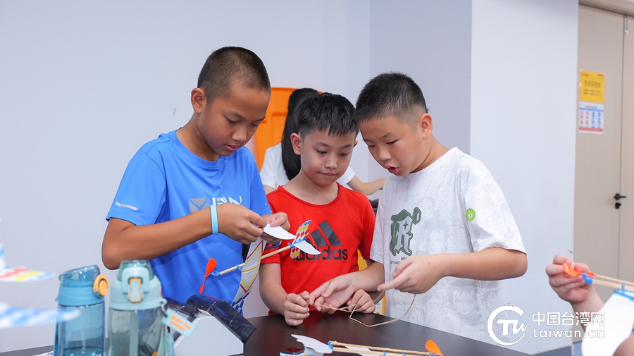 两岸学子共同制作飞机模型。(中国台湾网 发)