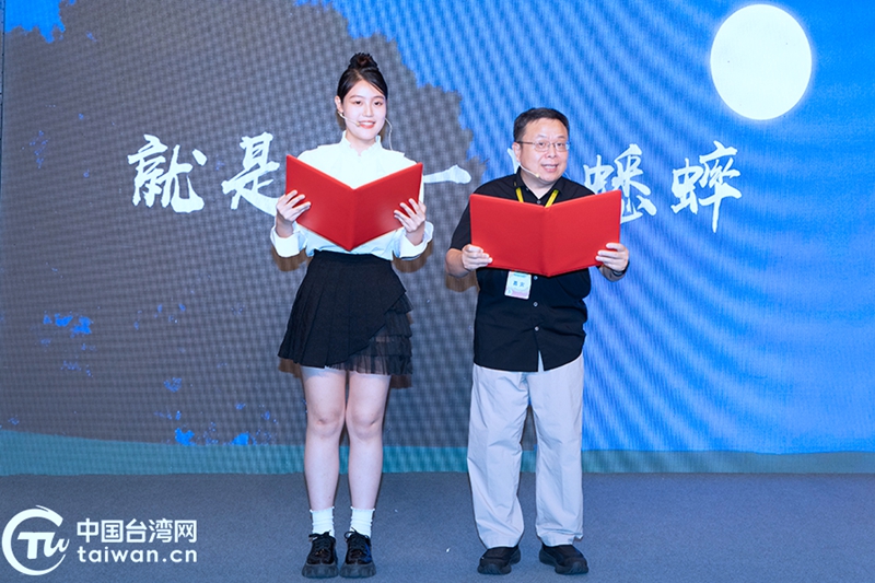 台湾青年阙郁璇(左)与大陆仙侠代表作家管平潮朗诵现代诗。(中国台湾网记者 陈佳慧 摄)