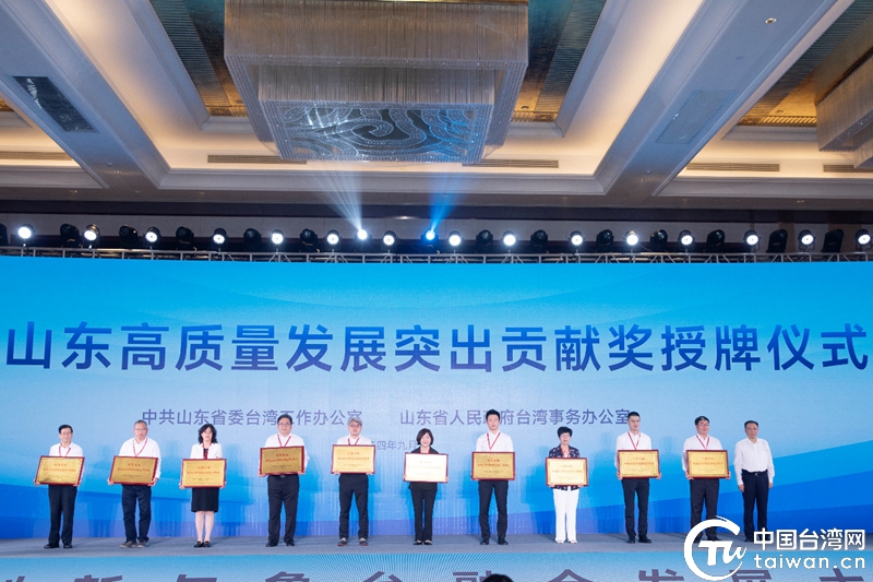 产业创新与鲁台融合发展大会上,20位在鲁台资企业、创业台青代表获颁“助力山东高质量发展突出贡献奖”纪念牌。(中国台湾网记者 陈佳慧 摄)