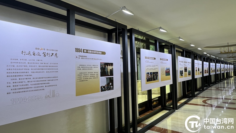 “熠熠30年”鲁台会精彩回眸展集中展示了自首届举办以来的大量珍贵资料图片。(中国台湾网记者 孙路路 摄)