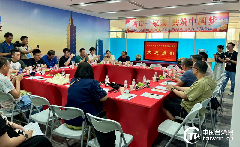 采访团一行在成都(星点)海峡两岸新经济创业园与入驻园区的台青创业者代表进行座谈。 (中国台湾网记者 刘琳 摄)
