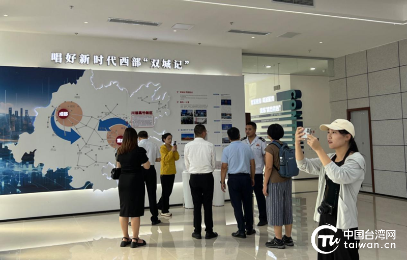 采访团一行在川渝高竹新区税费征管服务中心大厅了解四川探索跨省域一体化税费征管体制机制改革情况。(中国台湾网 刘琳 摄)