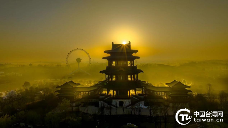 成都世园会主会场的核心场馆锦云楼和远处的“天府眼”摩天轮。 (中国台湾网 发)