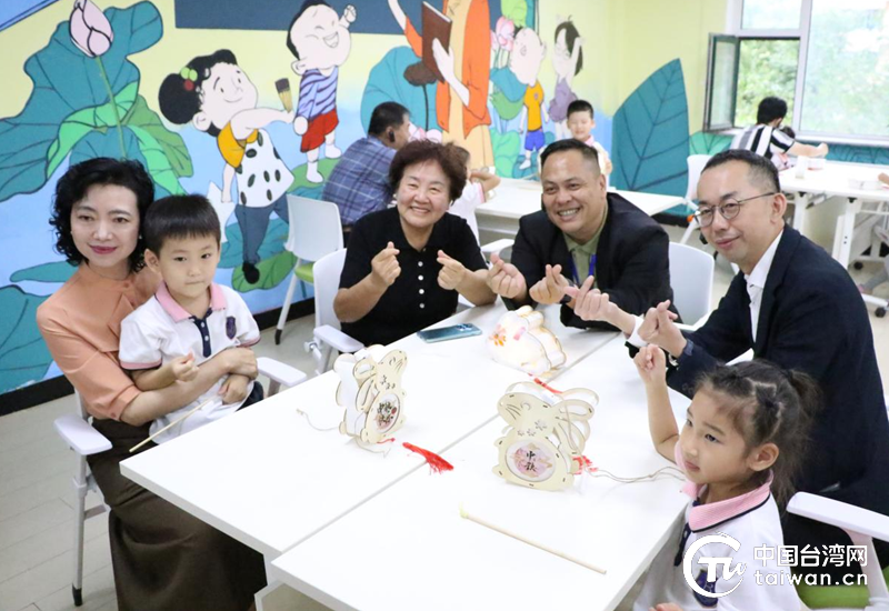 参访团与幼儿园的小朋友们一同在现场DIY制作中秋灯笼。(中国台湾网记者 刘赛飞 摄)