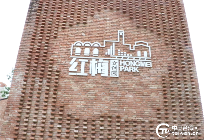 “红梅文创园”的白色标识在阳光下熠熠生辉。(中国台湾网记者 刘赛飞 摄)