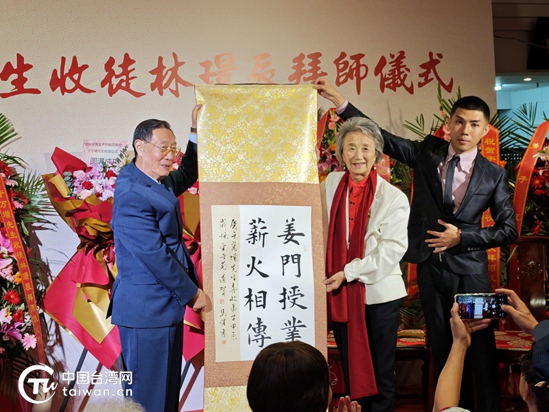 于万增先生收徒暨林璟辰拜师仪式现场图。(中国台湾网发)