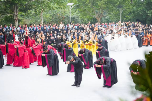尤其值得一提的是,本次祭孔典礼中出现了一个令现场人士惊叹的巧合事件——在典礼进行至《上天下雨》一节,尤其现场童声吟诵“上天下雨,普滋万物,万物润泽,欣欣喜喜。大地承载,千山万水,生生死死,皆在其中。