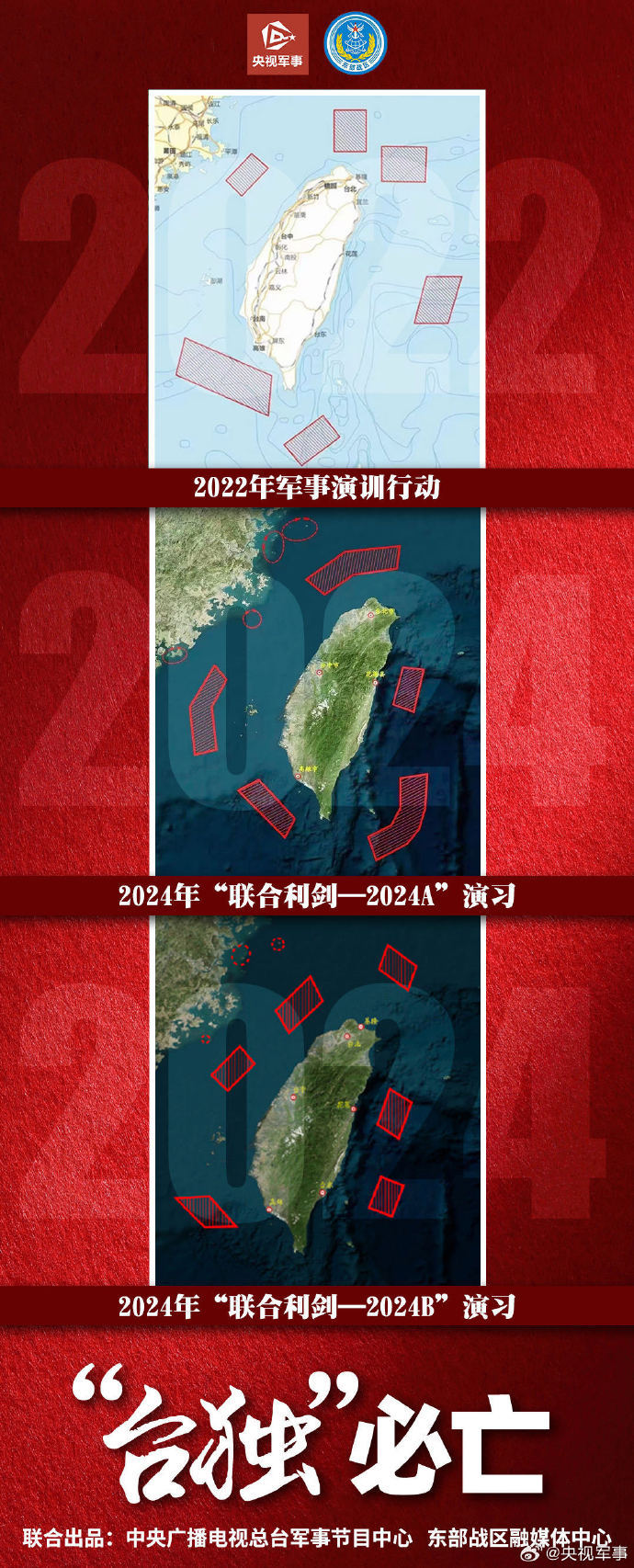 “台独”挑衅一次反制就推进一步 3次围岛行动示意图对比