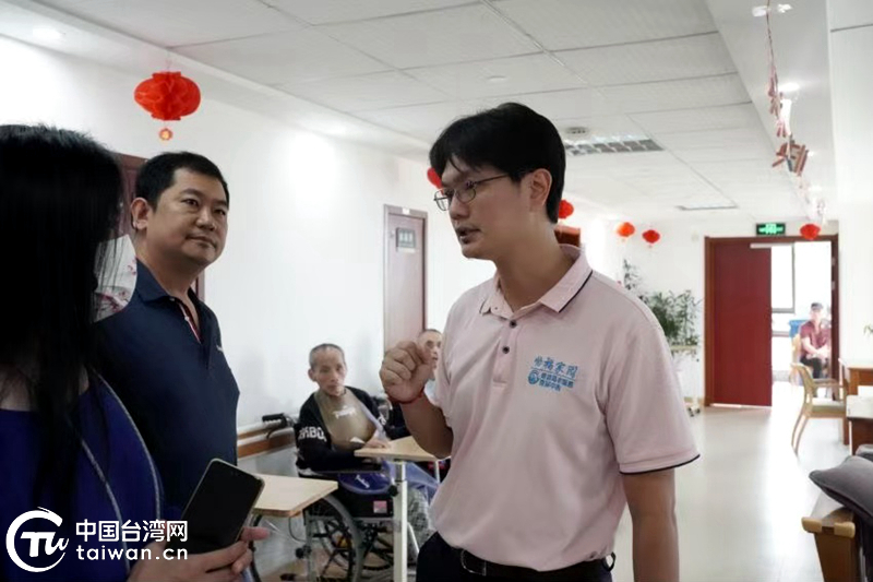 台湾青年张宇宽(右一)在向记者介绍怡福家园运营情况。(中国台湾网记者 刘赛飞 摄)
