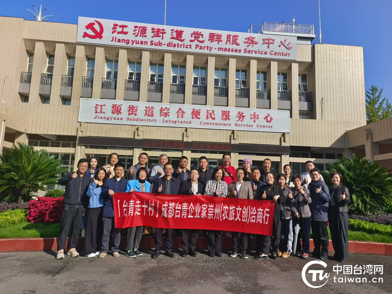 亚台青(成都)海峡青年创业园企业考察团到访崇州市江源街道。(中国台湾网发)