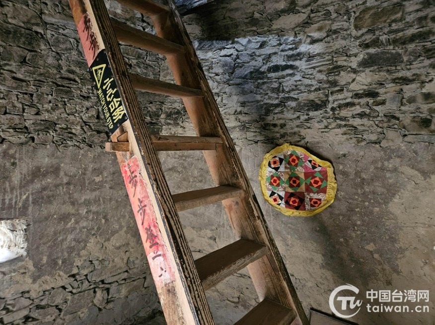 可以通过木梯登上房顶。(中国台湾网记者 李宁 摄)