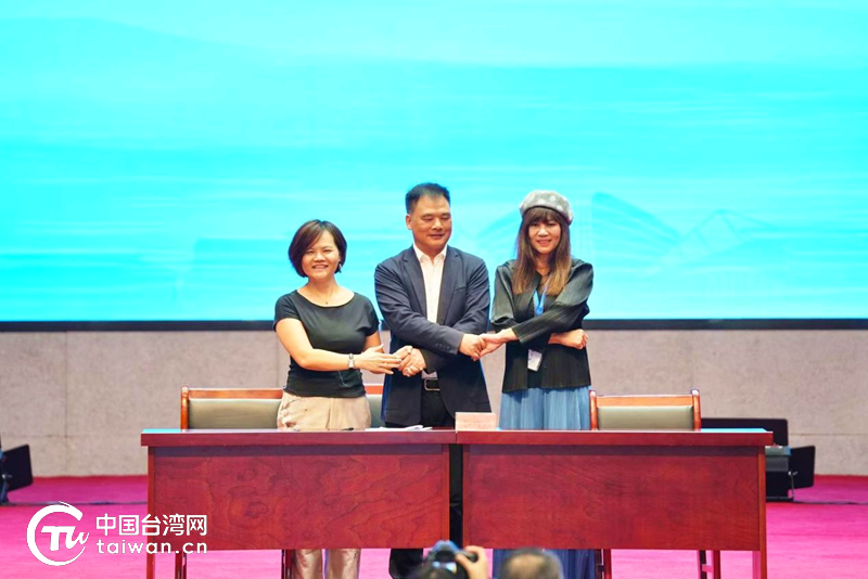 海峡两岸作家代表相互赠书。(中国台湾网 发)