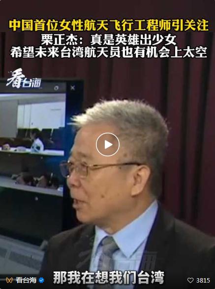 “少年出英雄,现在少女也出英雄了。”中国首位女性航天飞行工程师也引发岛内舆论的关注,台退役将领栗正杰表示,这批航天员中有两位都是“90后”,大陆在航天技术上面代代出新人,一代培育一代。下一批航天员里面还有港澳地区的航天员,“我在想我们台湾什么时候也可以有航天员上太空去。”